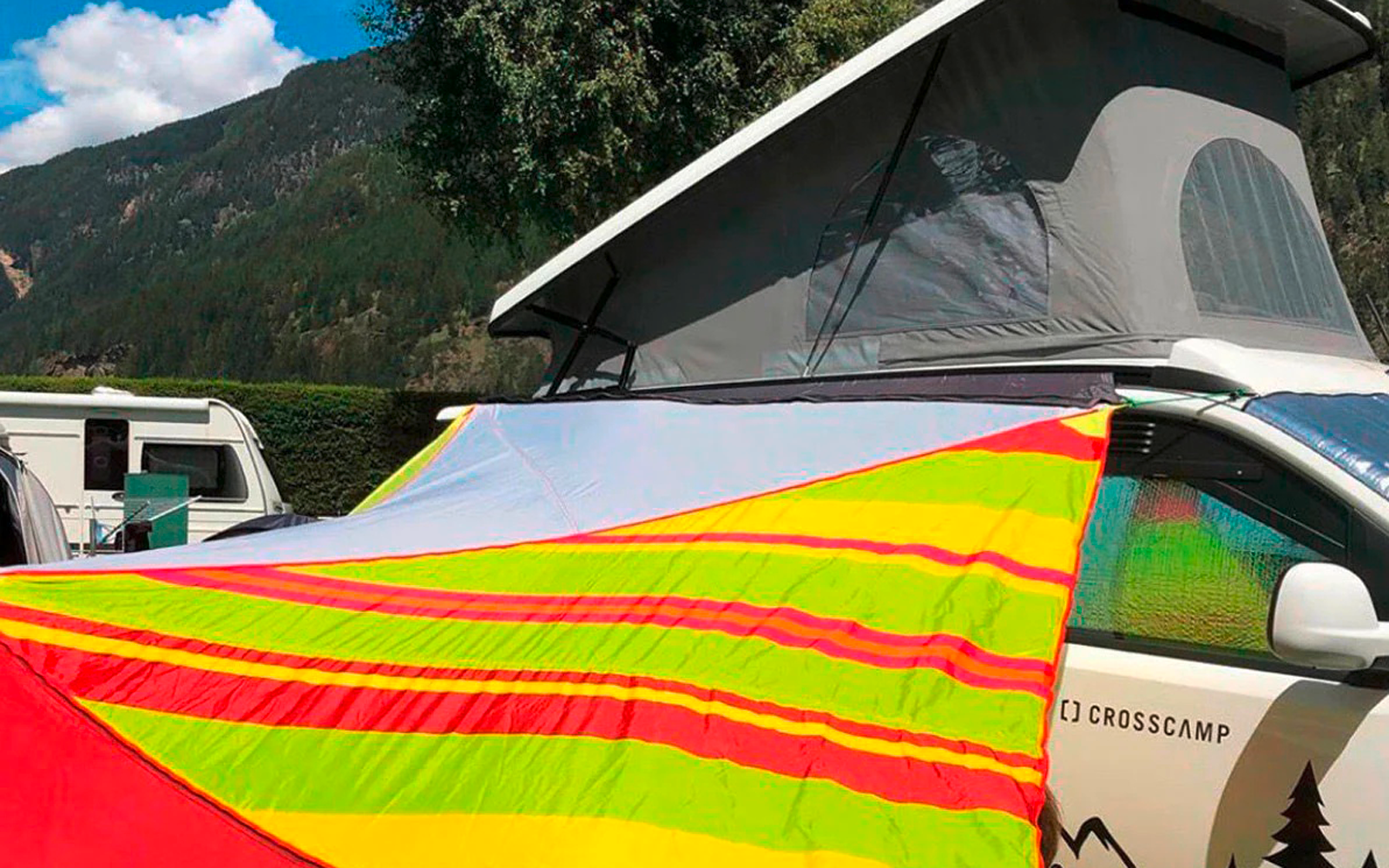 | Adaptateur de véhicule pour logement de bourrelet de 10 mm (par ex. Campster, Crosscamp) | Tunnel de barre d'écluse avec deux ouvertures pour une fixation flexible | Rabat de couverture zippé pour une transition au sec | Se range de manière compacte dans une poche en filet avec cordon de serrage |