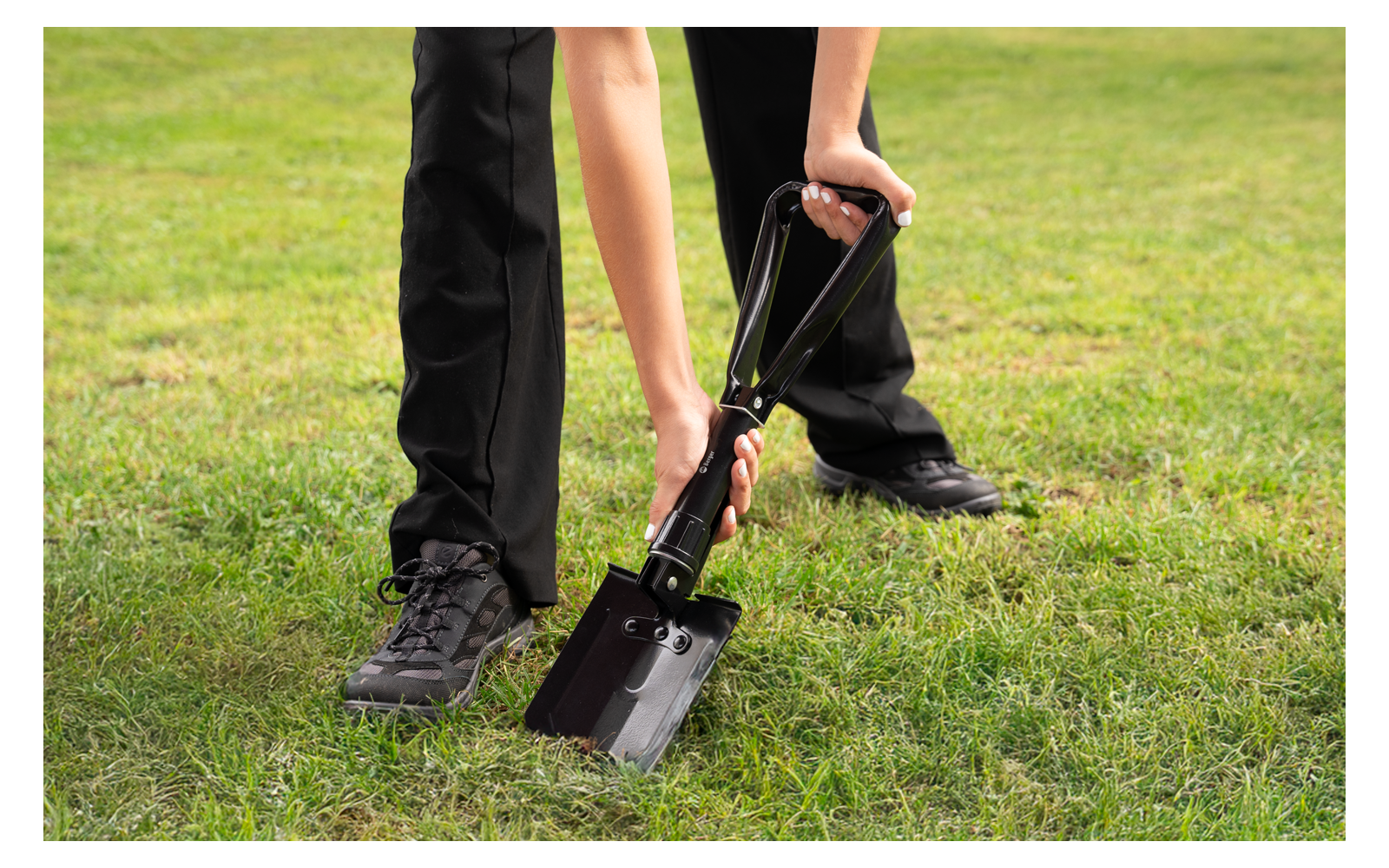 La bêche pliante séduit par son design ingénieux à deux volets et se plie à une dimension compacte de seulement 24,5 × 15 × 6 cm - idéale pour un rangement peu encombrant dans un sac à dos, un coffre de voiture ou un bagage de camping.