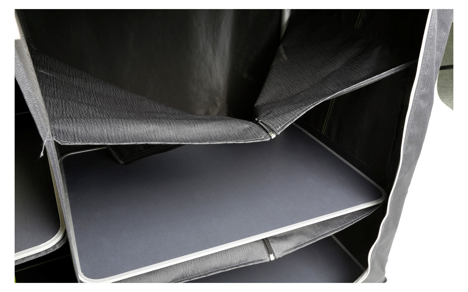 - Compartiments de rangement : 2 compartiments de rangement séparés avec fermeture éclair (5 étagères)