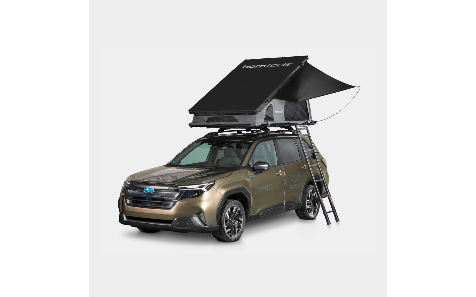 Mit 140 cm Liegefläche bietet es Platz für zwei bis drei Personen und lässt sich dank Gasdruckfedern in unter drei Minuten auch alleine aufbauen. Im geschlossenen Zustand misst es nur 12,5 cm Höhe und reduziert dadurch Luftwiderstand und Windgeräusche. Decken und Schlafsäcke können während der Fahrt im Zelt verbleiben.
