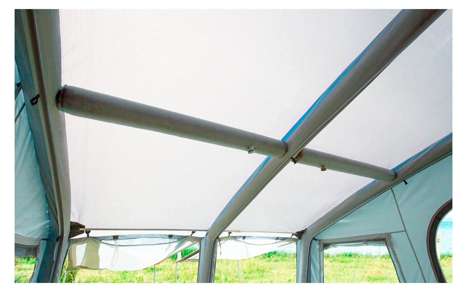 Le tube se fixe à l'aide de bandes velcro et tend le toit en largeur pour une meilleure stabilité.