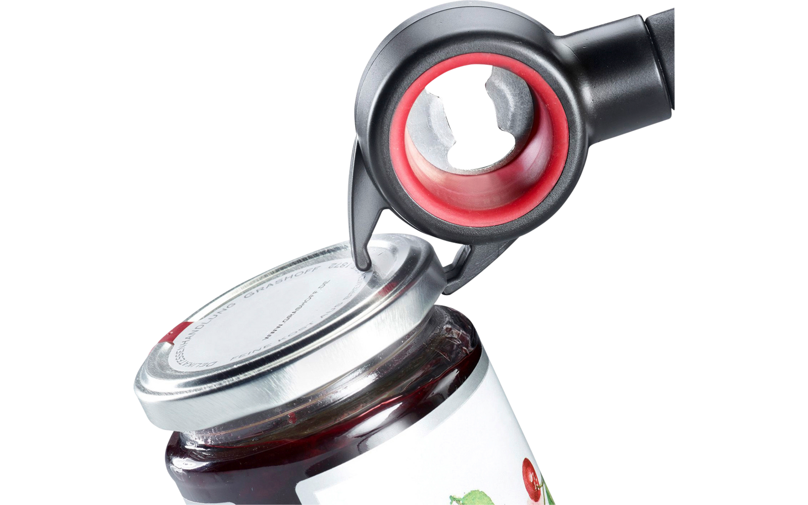 | Passe au lave-vaisselle et s'entretient facilement | Avec œillet de suspension pour un rangement peu encombrant | Ouvre sans effort les couvercles, les capsules, les bouchons vissés | Ouvreur multiple avec poignée confortable Soft-Touch et œillet de suspension |